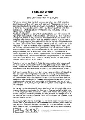 That’s the wrong way round, isn’t it? That’s what we are inclined to think as we read that final verse. If I were to use ‘the body and the spirit’ as a picture for ‘faith and works’, I would make ‘faith’ correspond to the ‘spirit’ and ‘works’ to the ‘body’. After all, faith happens in the spiritual dimension, and works in the bodily dimension, doesn’t it?...
