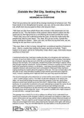 I mentioned earlier that I had been reading the diary of a clergyman who had been a prisoner of war from 1940 to 1945. It was both fascinating and frustrating. Fascinating as a firsthand, day-by-day account of the life such people had to endure. Frustrating because the Germans, not unnaturally, wouldn’t let people write things in diaries which they thought might be subversive. Just as all letters coming in or going out of the camp had to be screened by censors, so all diaries – and many prisoners kept them – were regularly checked, and would have been confiscated or destroyed if they had been saying anything too explicit about the progress of the war. This was so especially in the last year or two, when the Allies invaded Europe and the prisoners were eager for news, rumours, anything which might tell them how soon they would be liberated...