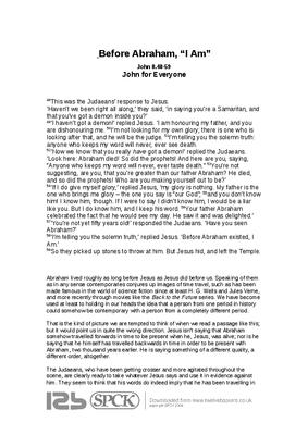 Abraham lived roughly as long before Jesus as Jesus did before us. Speaking of them as in any sense contemporaries conjures up images of time travel, such as has been made famous in the world of science fiction since at least H. G. Wells and Jules Verne, and more recently through movies like the Back to the Future series. We have become used at least to holding in our heads the idea that a person from one period in history could somehow be contemporary with a person from a completely different period...