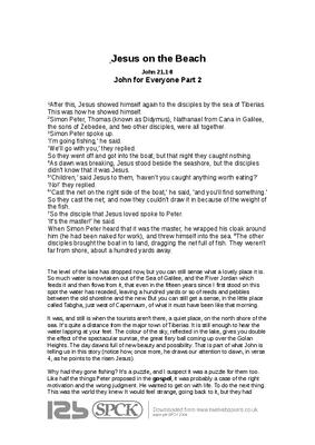 The level of the lake has dropped now, but you can still sense what a lovely place it is. So much water is now taken out of the Sea of Galilee, and the River Jordan which feeds it and then flows from it, that even in the fifteen years since I first stood on this spot the water has receded, leaving a hundred yards or so of reeds and pebbles between the old shoreline and the new. But you can still get a sense, in the little place called Tabgha, just west of Capernaum, of what it must have been like that morning...