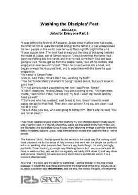 The first time I did it, I had prepared for the service in the usual way. But nothing could have prepared me for the sense of holy intimacy that went with the simple but profound action of washing other people’s feet. Feet are very basic things: not pretty, not ugly, just basic. Down to earth, you might say. Washing them is both very mundane (we all have to wash our feet, and we do it so regularly we hardly think about it) and very close and personal. Washing between someone else’s toes is an intimate action. It is a moment of tenderness...