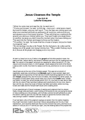 At last it is Jesus’ turn to cry. Earlier in the gospel we find other people in tears: the widow at Nain, Jairus’s family, and others in distress coming to him for healing and new life. The women of Jerusalem will shortly be weeping for Jesus himself (23. 27). But Jesus is not immune to tears. In John’s gospel, Jesus weeps at the tomb of his friend Lazarus (John 11.35). Now here he weeps over the city, and there is no one to console him...