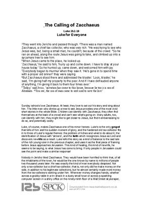 Sunday schools love Zacchaeus. At least, they love to act out his story and sing about him. The little man who climbs up a tree to see Jesus provides one of the most vivid short stories in the whole Bible. Children can identify with Zacchaeus; they often find themselves at the back of a crowd and can’t see what’s going on. Many adults, too, can identify with him; they might like to get closer to Jesus, but find it embarrassing to do so, and potentially costly...