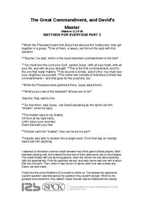 The Great Commandment, and David’s Master