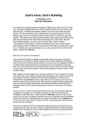 I found myself embroiled in a debate on that subject a few years ago. From time to time people try to establish a familiar viewpoint: Jesus didn’t really begin Christianity, since he was just an ordinary Jewish teacher who would have been appalled to think of a ‘religion’ being started around him, and what we know as Christianity, and project back on to Jesus, was in fact the invention of Paul. On this occasion, the writer making the case was a well-known journalist, novelist and biographer, trying his hand on early Christian history...