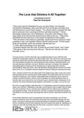 Taken from Paul 1 Corinthians for Everyone – by Tom Wright