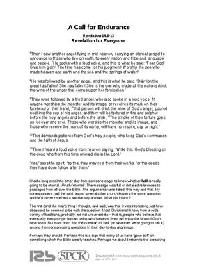 I had a long email the other day from someone eager to know whether hell is really going to be eternal. Really ‘eternal’. The message was full of detailed references to passages from all over the Bible. The arguments were listed, this way and that. My correspondent had, he said, asked several other church leaders the same question, and he’d never received a satisfactory answer. What did I think?...