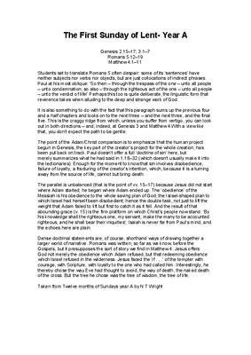 The First Sunday of Lent - Year A Genesis 2.15–17; 3.1–7