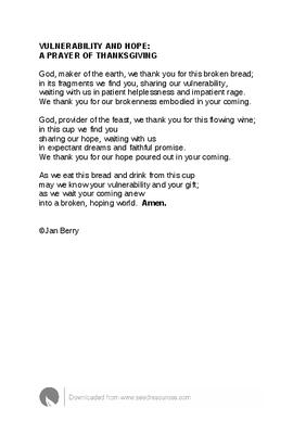 VULNERABILITY AND HOPE: A PRAYER OF THANKSGIVING