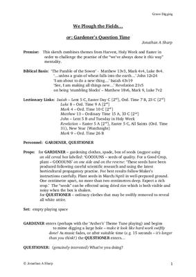This sketch for two actors combines themes from Harvest, Holy Week and Easter in order to challenge the practise of the “we’ve always done it this way” mentality