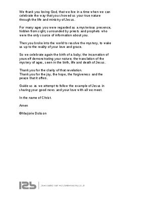 We thank you loving God, that we live in a time when we can celebrate the way that you showed us your true nature through the life and ministry of Jesus.