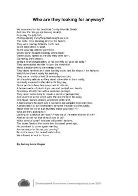 This poem was inspired by the metal men/ statues on Crosby beach. Writen by Audrey Hogan and illustrated with photographs taken on her digital camera in September 2008.