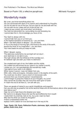 Based on Psalm 139, a reflective paraphrase