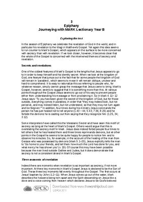 In the season of Epiphany we celebrate the revelation of God in the world, and in particular his revelation to the Magi in Matthew’s Gospel. Yet again this idea seems to run counter to Mark’s Gospel, which appears on the surface to be more concerned with secrecy than with revelation. If we look closer, however, it becomes clear that the whole of the Gospel is concerned with the intertwined themes of secrecy and revelation...