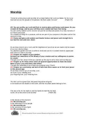 A prayerful liturgy for church or small group on the theme of 'Worship - on one side A4 for ease of copying